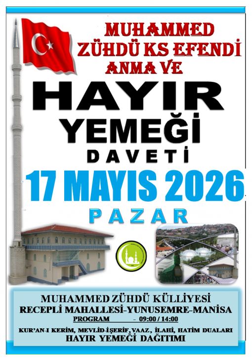 HAYIR YEMEĞİ DAVETİ - 17 MAYIS 2026 PAZAR 09:00 - 14:00 ![]() ![]() ![]() |